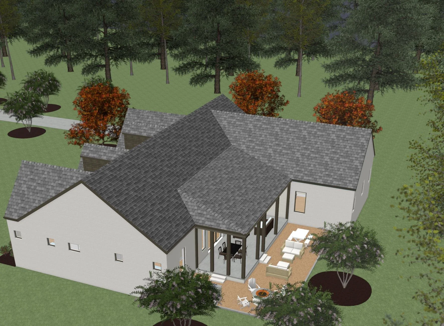 One of the defining features of this home is its emphasis on connection — wide open interior spaces that extend naturally outdoors. The covered porch creates the perfect backdrop for: